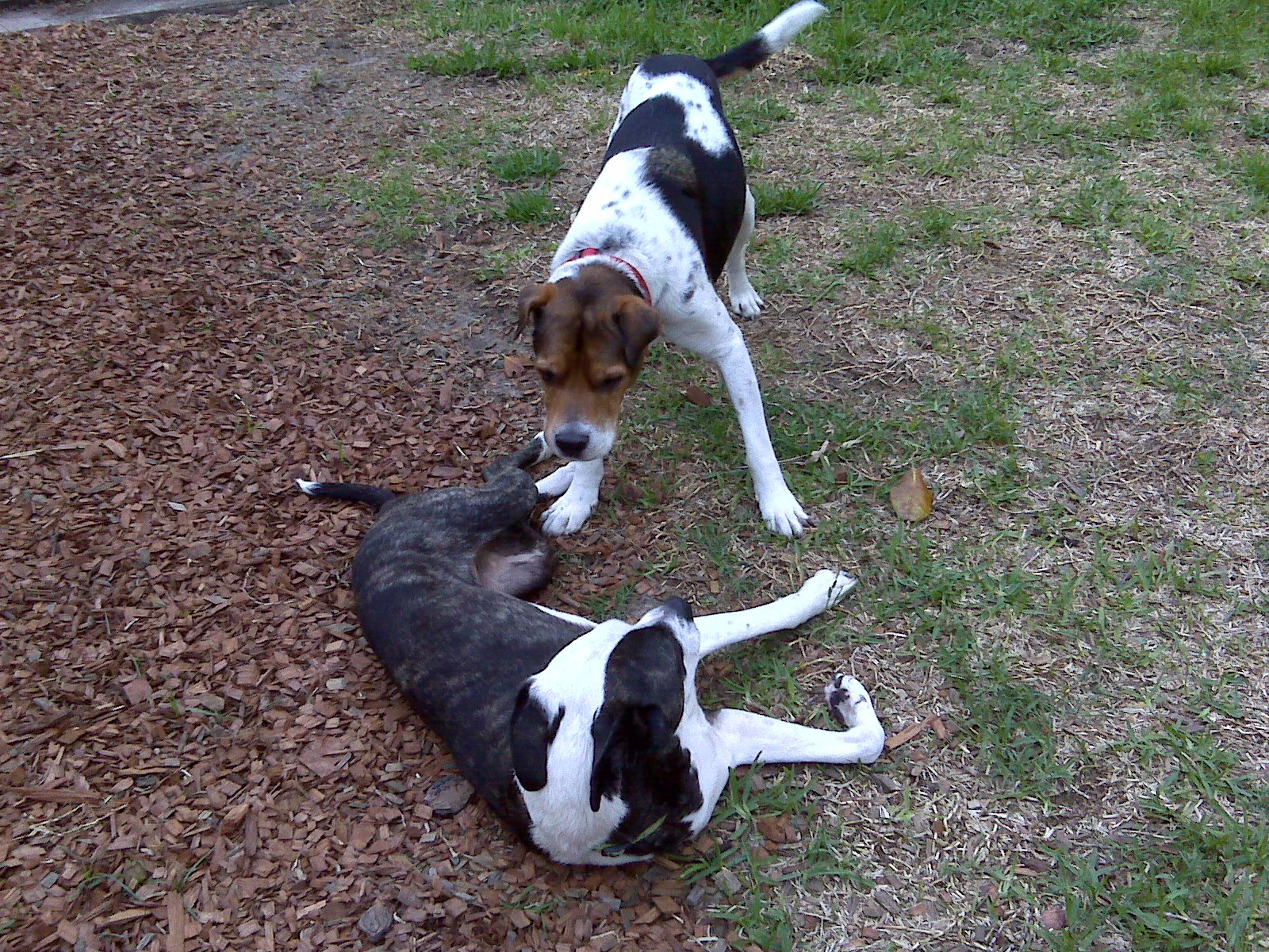 Boxer and Sydney are playing in the picture. It’s Tuesday afternoon and the big dogs are stretching their legs and taking care of business. They’ll probably get to eat dinner early since we have a Crime Watch/Neighborhood Meeting to attend.