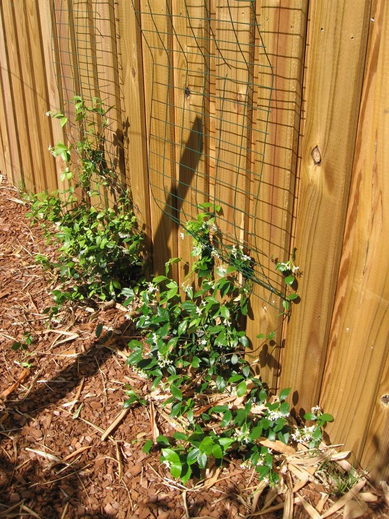 We planted a bunch of coral honeysuckle this weekend. We’ve fashioned some homemade trellises that we’ll attach to the fence as you can see below.