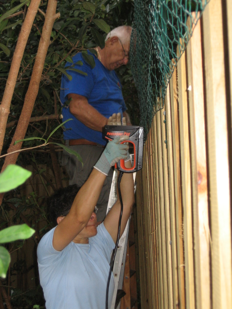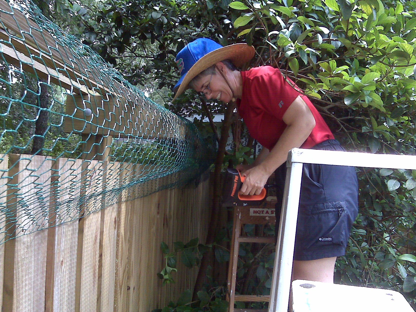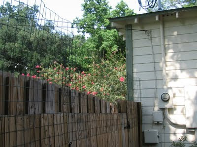 Many of you know that one of the reasons we paid mucho dollars to have a 6-foot privacy fence installed was because Peanut had learned to climb our four foot chain link fence. It seems we didn’t spend enough. Perhaps we should have splurged for an 8-foot fence.