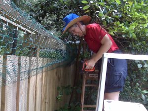 Our neighbors have recently acquired some cats that they allow to roam. I’m fairly certain that Peanut climbed out in order to get a cat. From the looks of her, I think I can say with some certainty that she did not catch the cat. That’s a good thing. The bad thing is that now she knows she can climb out and we’re going to have to get very creative in keeping her inside the backyard. This is not the kind of challenge I like – I’m likely to lose a few years over this.