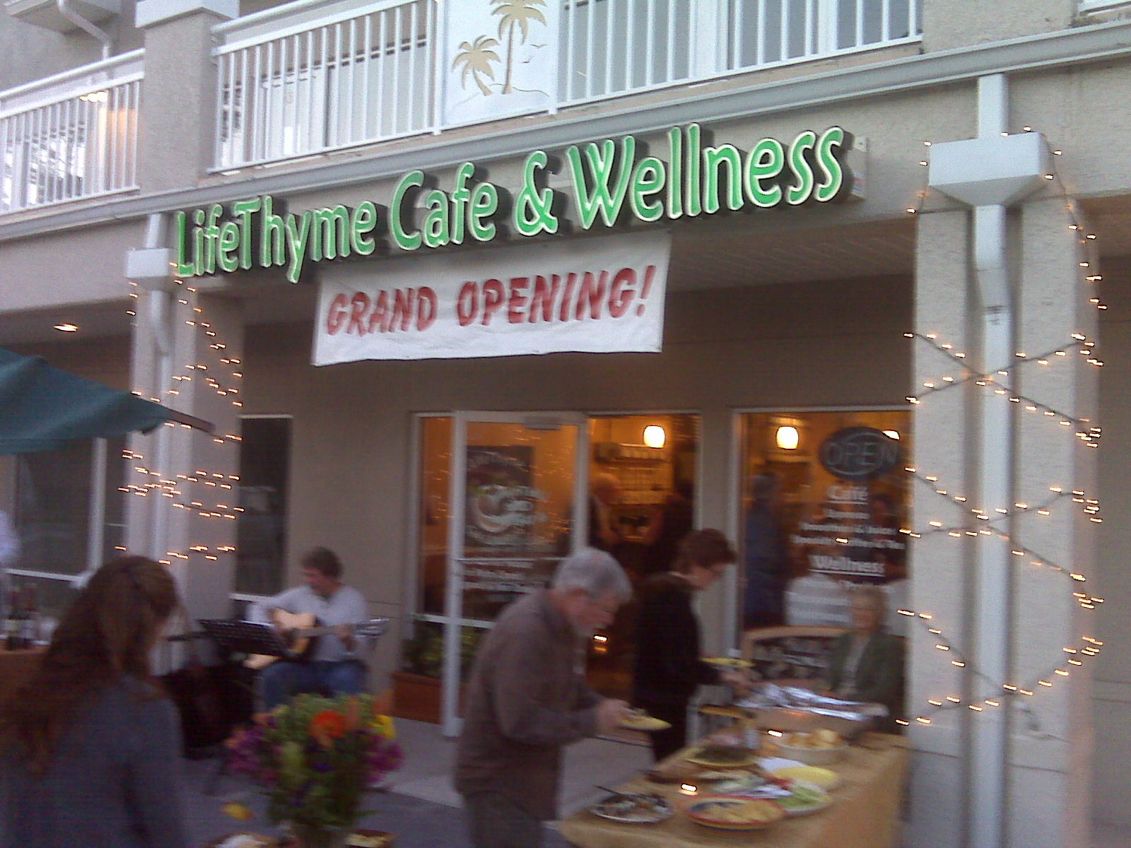 Yesterday we spent an enjoyable evening in Palm Coast at the grand opening of a new business there. Our friend Anne Marshall has just opened “Lifethyme Cafe and Wellness”. Anne is particularly special to us because she treated Lisa’s frozen shoulder back to health. Put simply, Anne is a miracle worker. We wish her a happy and successful future.