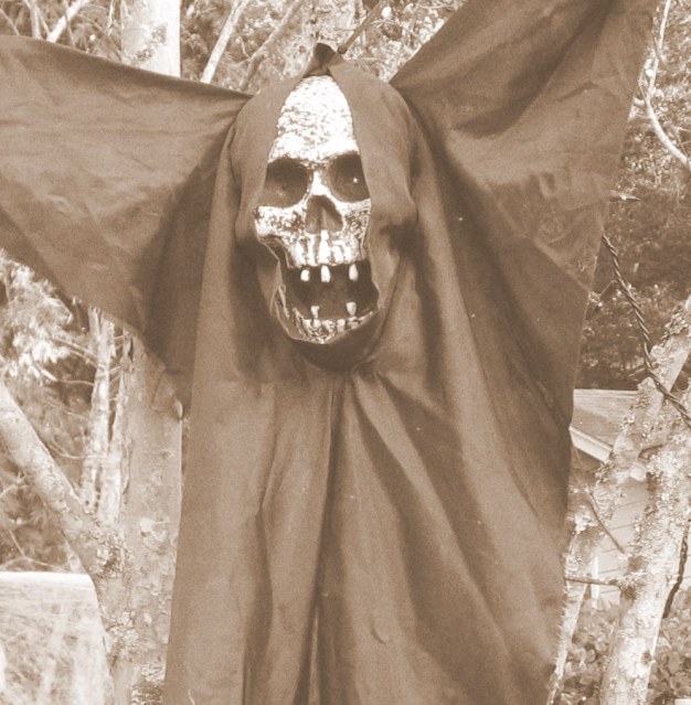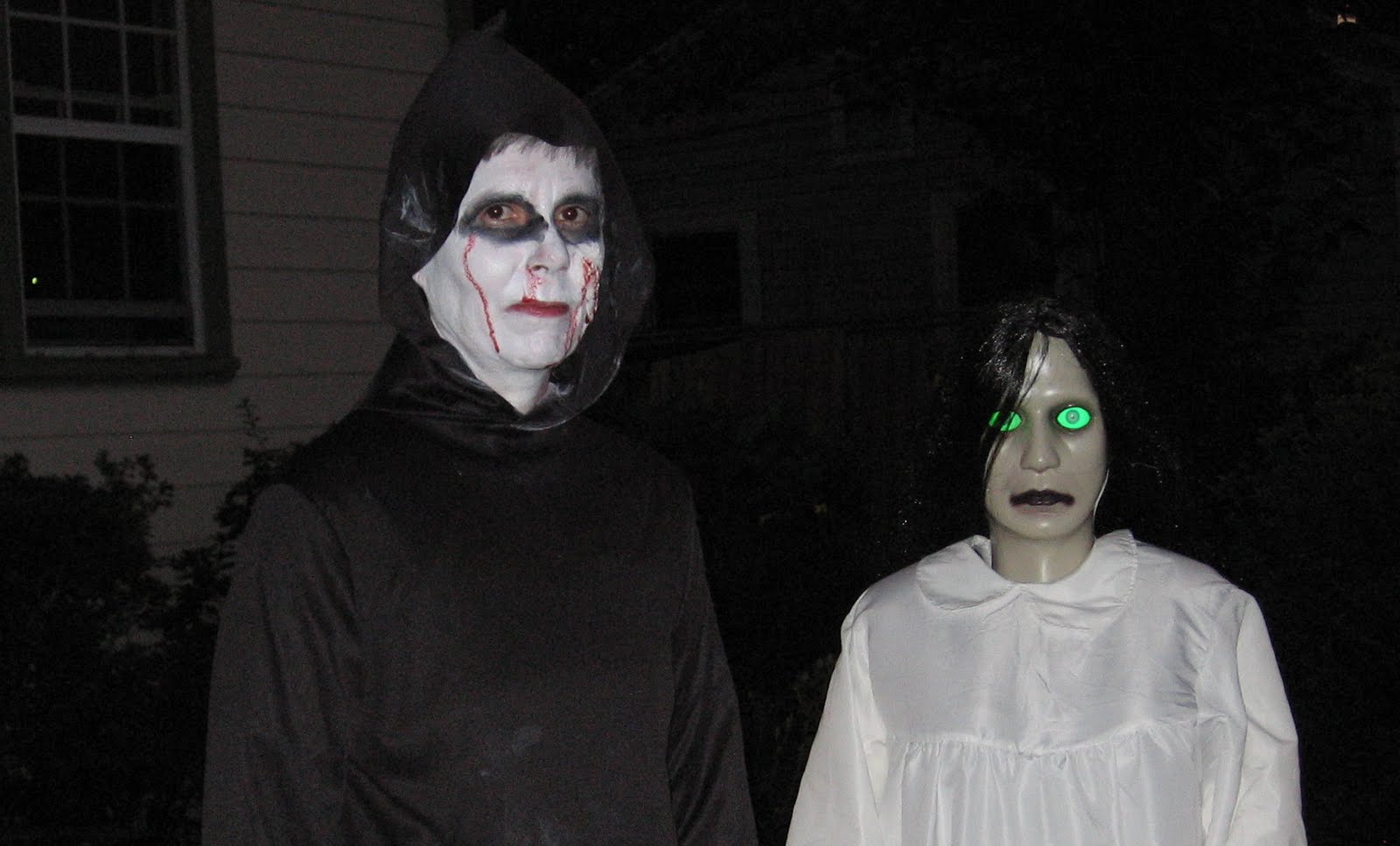 Dead Donna and I posed together as Halloween festivities commenced. Donna outdid herself this year – scared lots of children and adults! Her timing was impeccable most of the night – many fell down as they raced away from her – no injuries, thank goodness.