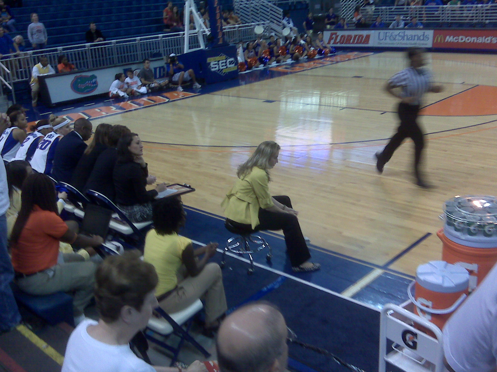 We attended the Florida Women’s basketball first game of the season on Saturday. For those that don’t know, Coach Butler tore her achilles tendon and is now in a boot – she used a stool with wheels the entire game. I don’t think she missed a beat. By the way, the Florida women won the game and we saw some exciting play from our freshmen. Next game is going to be a tough one against FSU on Tuesday. If you can, attend the game and give the team your support.