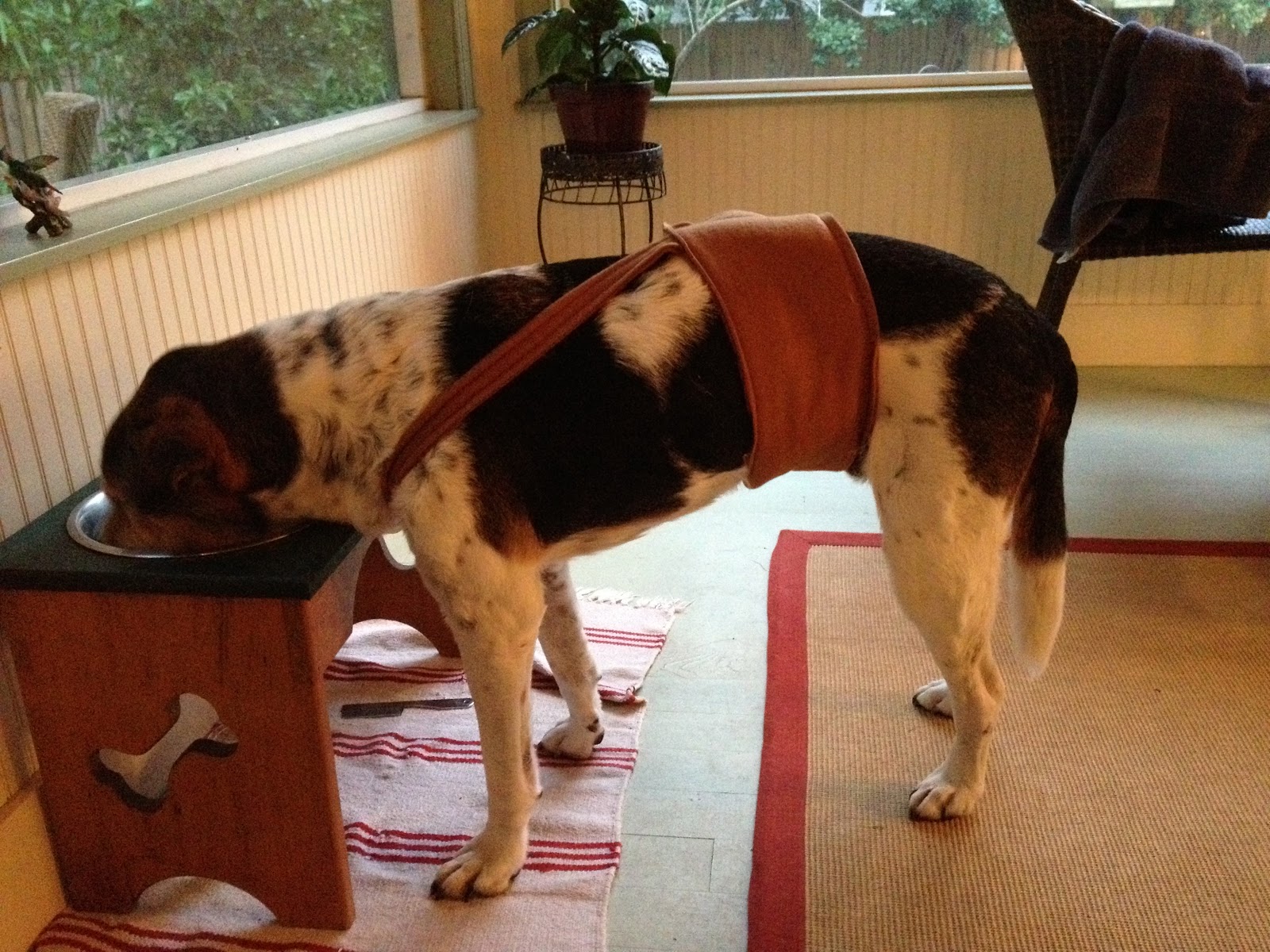We had to order Boxer a “male wrap” as he was leaking urine. Place a human male depends pad in there and you have peace of mind that you won’t be washing the bed sheets the next morning. Boxer is also suffering from kidney disease in general, not just nephritis.