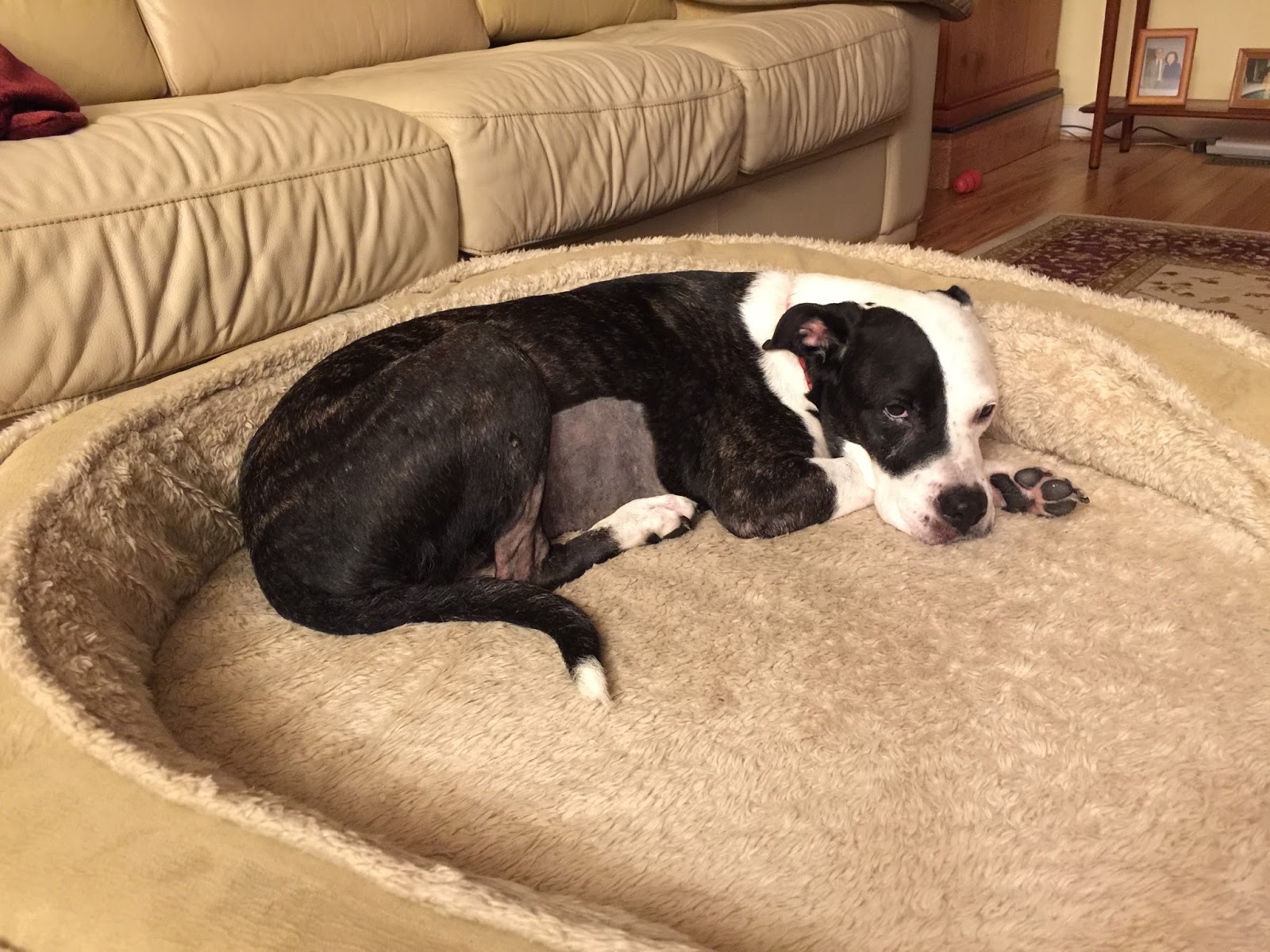 An ultrasound revealed a splenic mass and internal bleeding. The ER doc indicated a strong possibility of hemangiosarcoma – an aggressive and deadly cancer. She spent the night and received two blood transfusions as her red blood count was low. She also underwent several other diagnostic procedures to rule out any obvious metastasis. All came back clear.