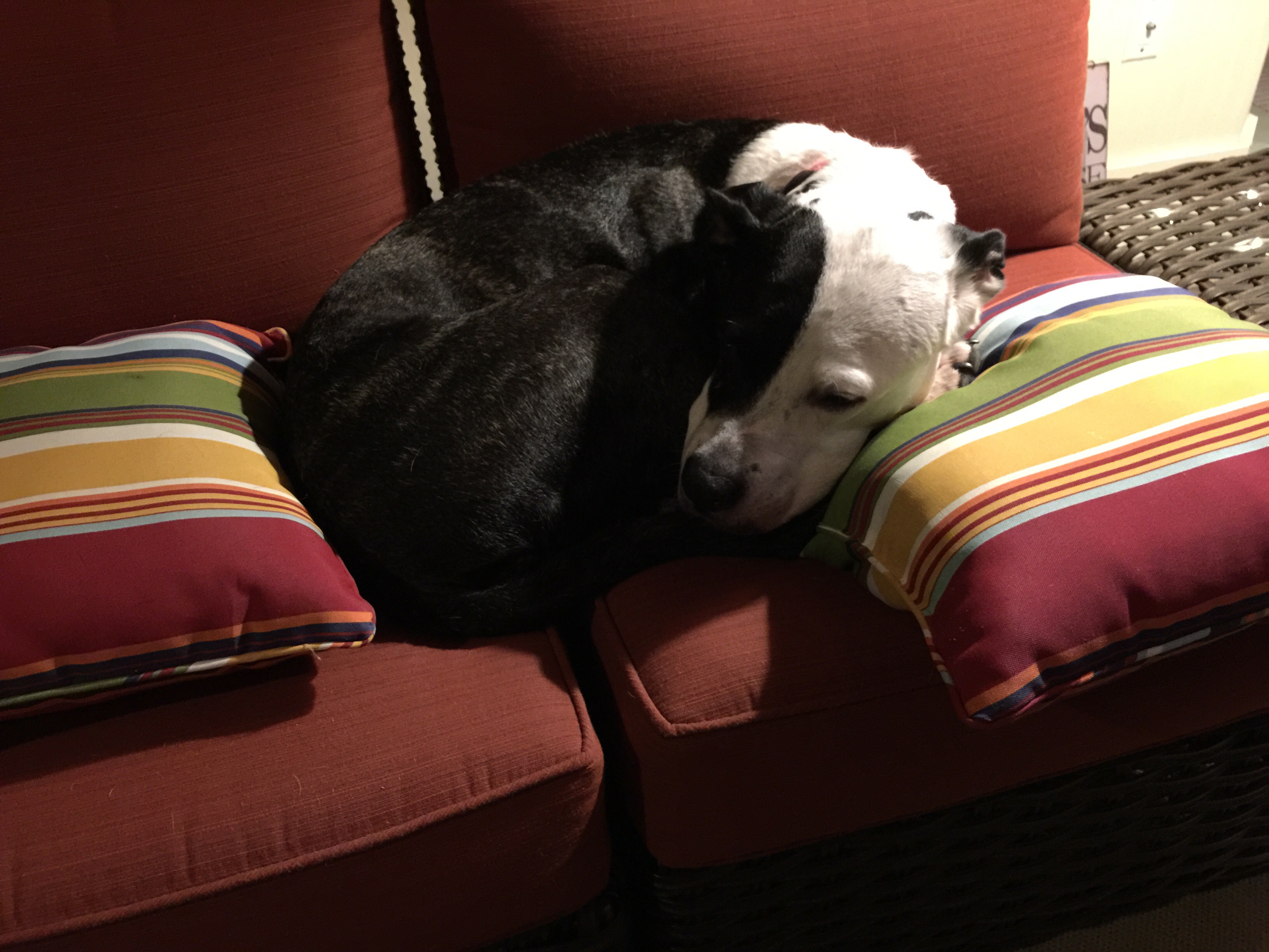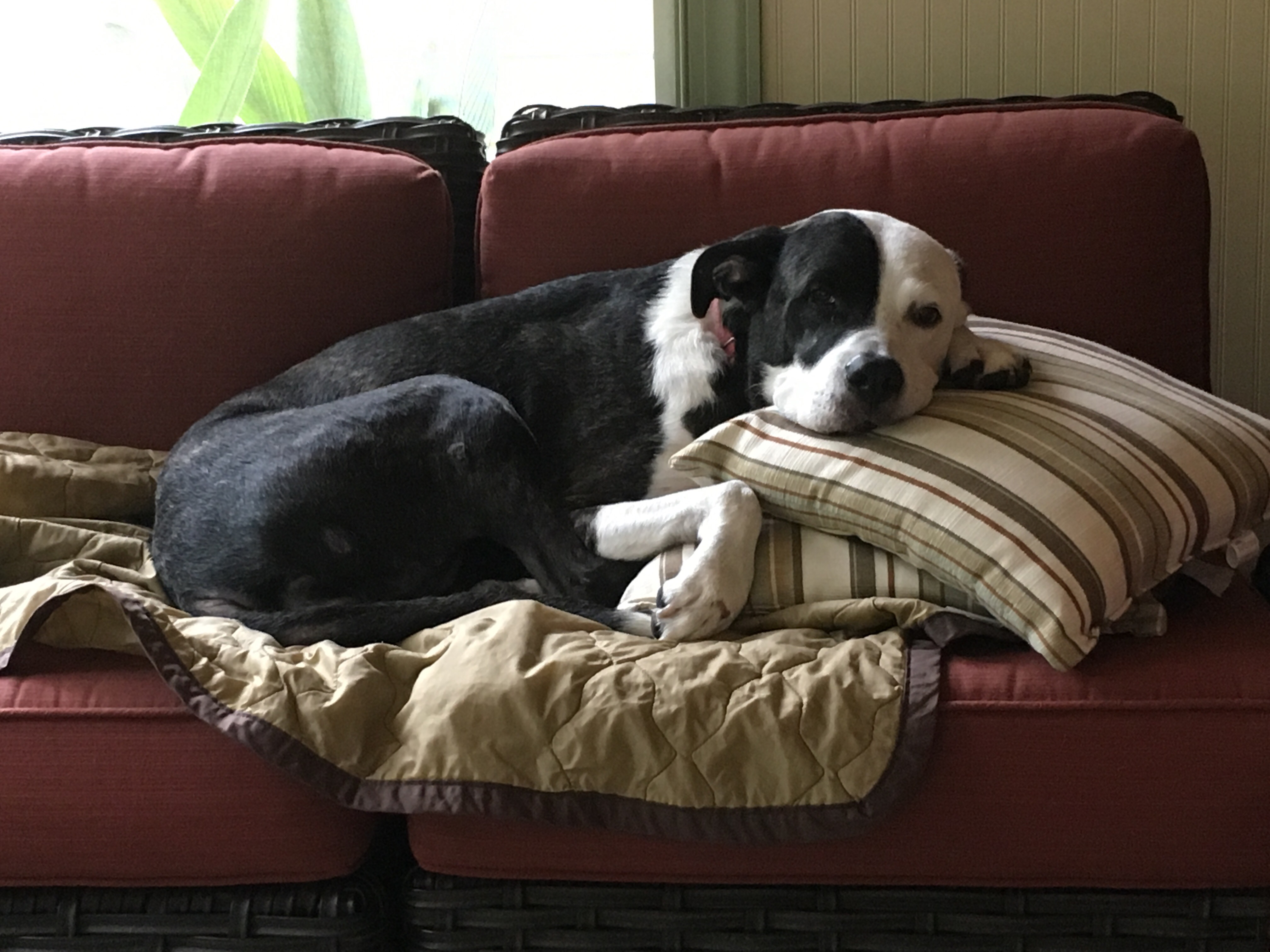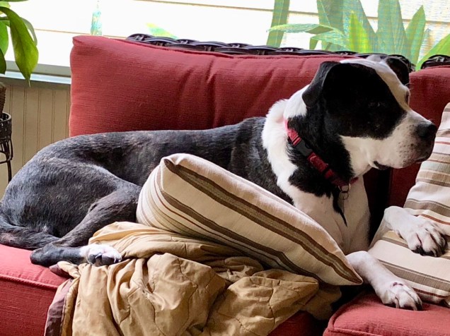 It was a cool morning and we found that Sydney had made herself comfortable among the pillows. Lest you think we’re kidding we added some other pics of Sydney and her love for pillows.