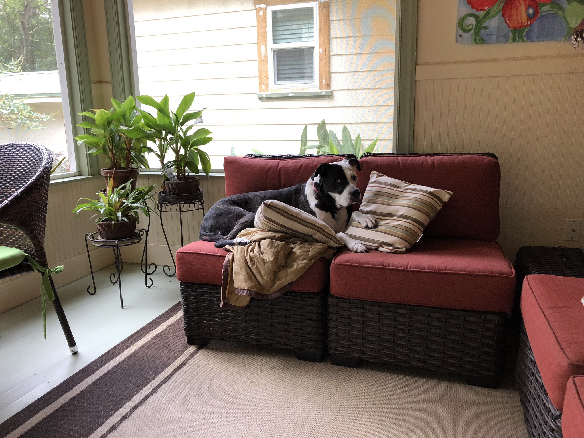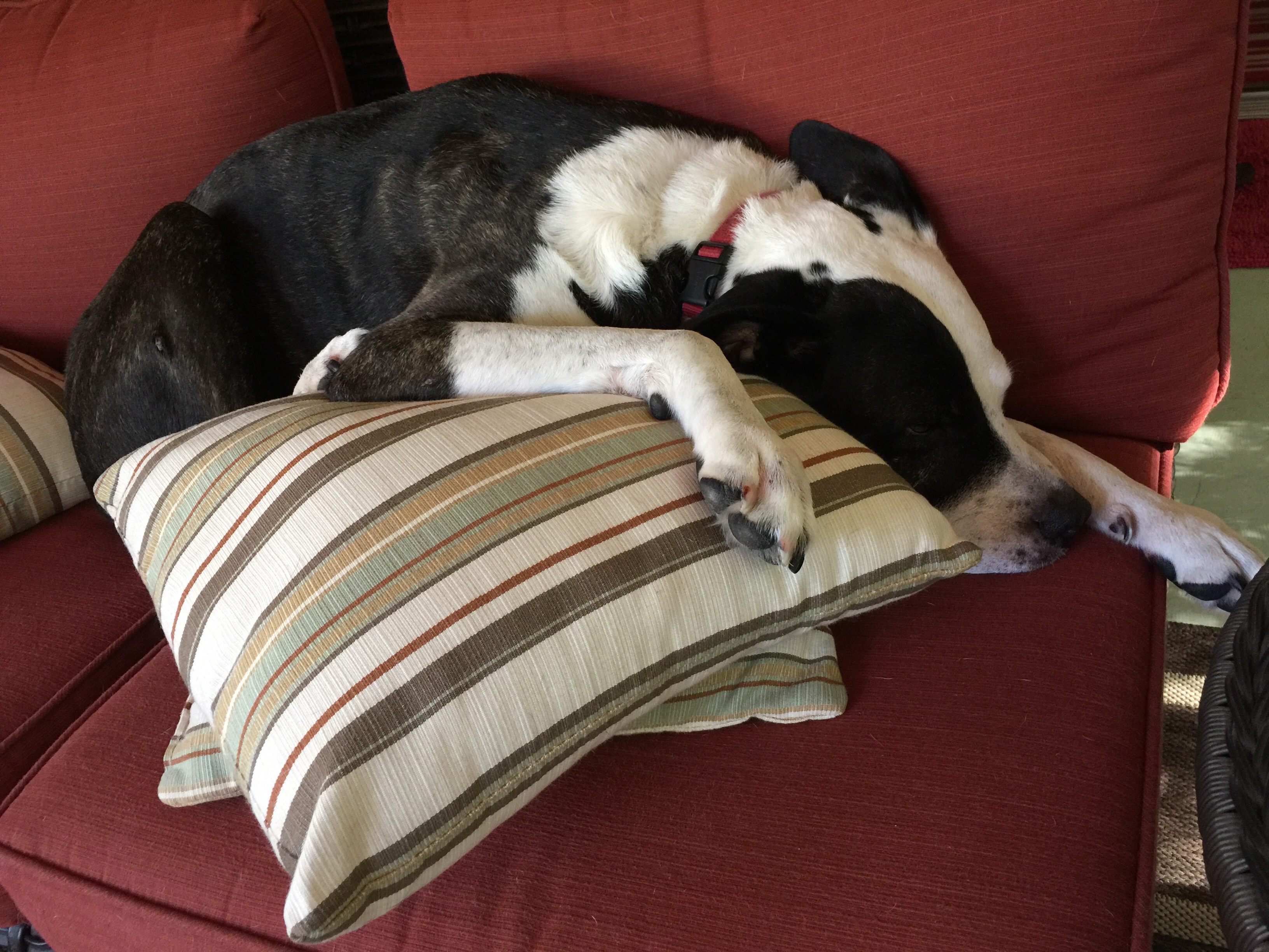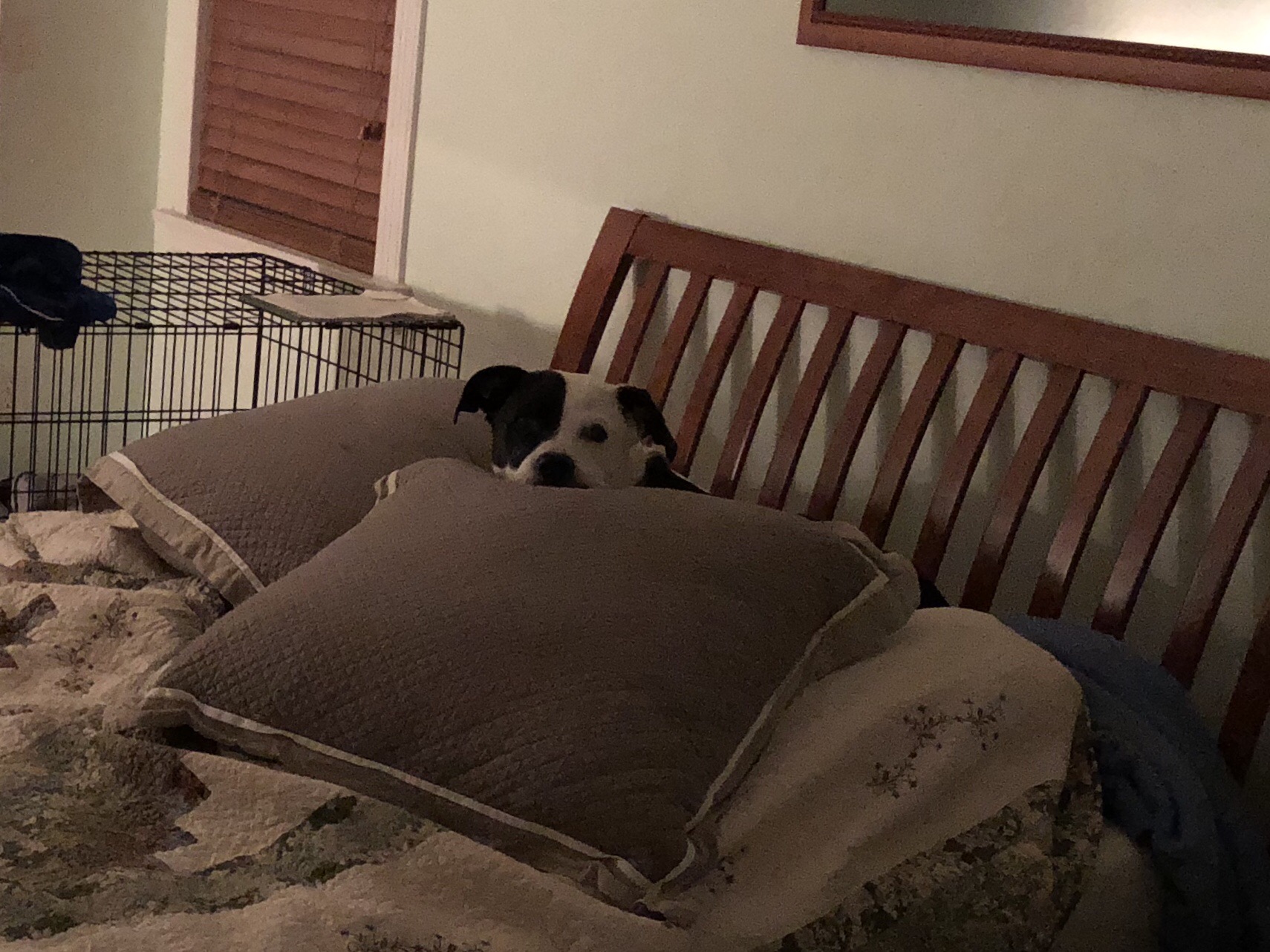 It was a cool morning and we found that Sydney had made herself comfortable among the pillows. Lest you think we’re kidding we added some other pics of Sydney and her love for pillows.