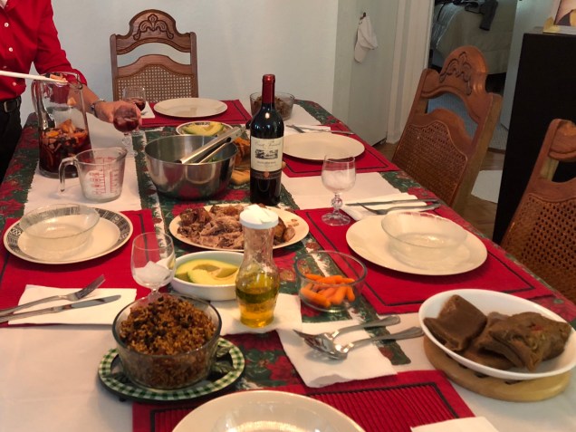 Rice and beans, pork, pasteles, avocado…