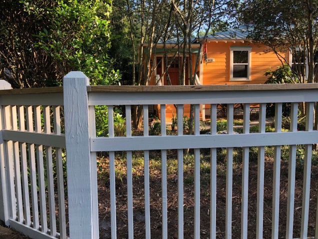 I’m sitting on my porch waiting for my grilled hamburger and cocktail to be ready. I’m tired. We spent the weekend applying a colored stain to our front fence…and we’re not done yet!