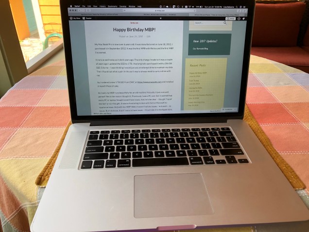 My Mac Book Pro is now over 6 years old. It was manufactured on June 18, 2012. I purchased it in September 2012. It was the first MPB with Retina and the first MBP I’ve owned.