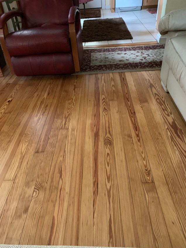 The tile floor resides on top of the original pine floor. We’re not confident that much of it can be restored given the way the “bad news contractors” gouged it back in 2001. So, we have met with Rudy (the floor guy) and he will be installing, sanding and finishing the floor. Our contractor suggested we take a ride out to Goodwin (near Micanopy) to see their offerings and talk about our floor.