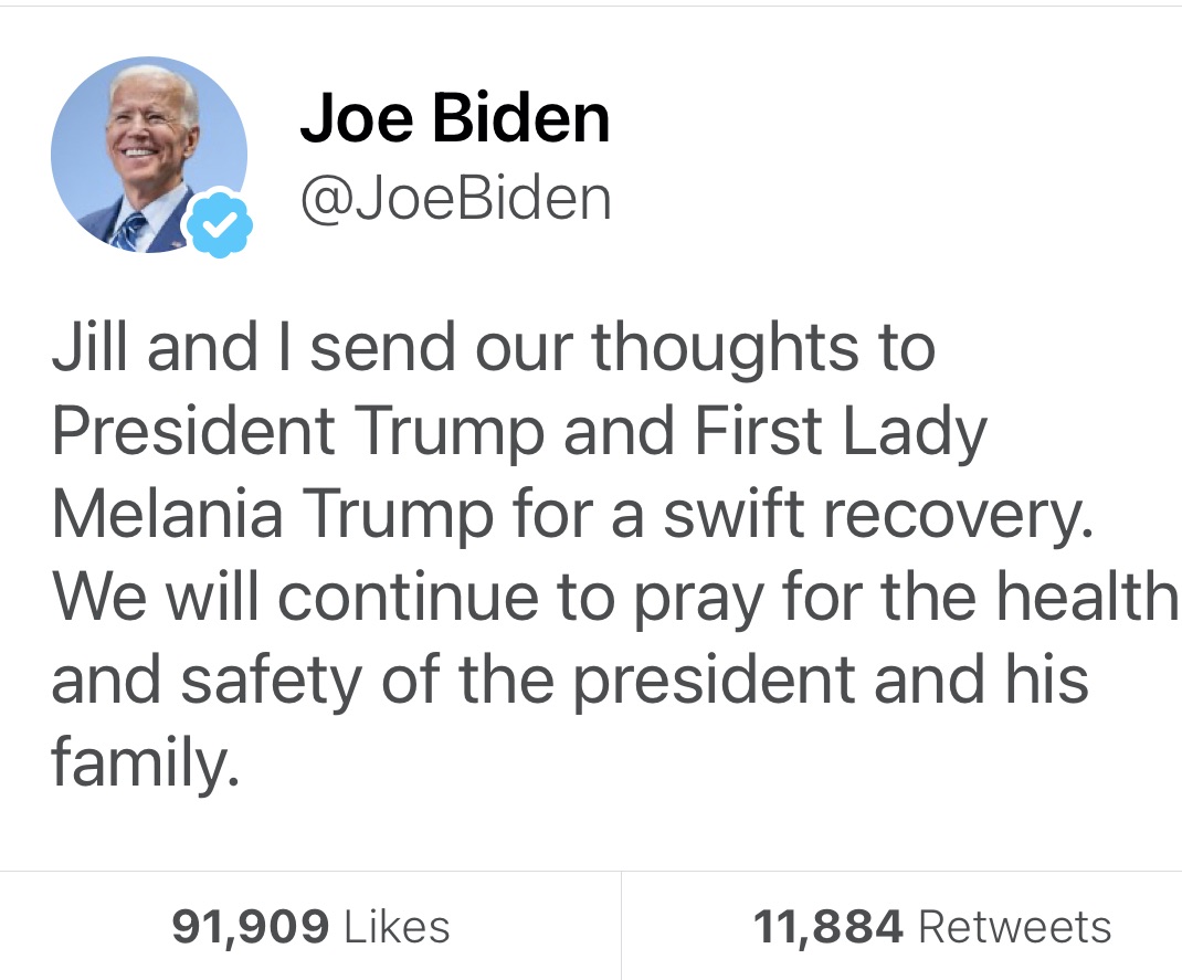 On the other hand, if true, then this president knowingly exposed people to the virus after he KNEW he was exposed. Instead of quarantining immediately, he attended a fundraiser in New Jersey where he DID NOT wear a mask. He has no regard for anyone except himself. I’m not willing to die for him…are you?